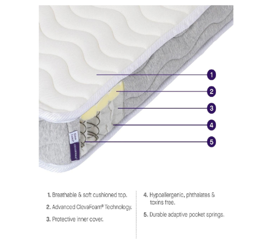 Clevamama Clevafoam Pocket Sprung Cot Bed Mattress - 70x140x11cm