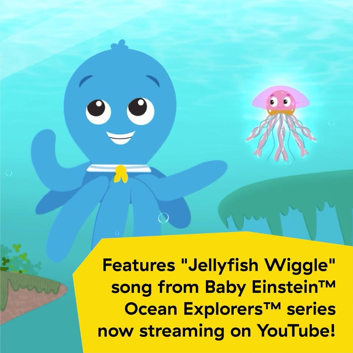 Dive into an ocean of curious discoveries! Now streaming on YouTube, join beloved Baby Einstein characters to learn about the ocean through STEAM-based principles and real footage of the deep. Co-view, sing, and dance-along to catchy and educational songs that spark baby's curiosity.