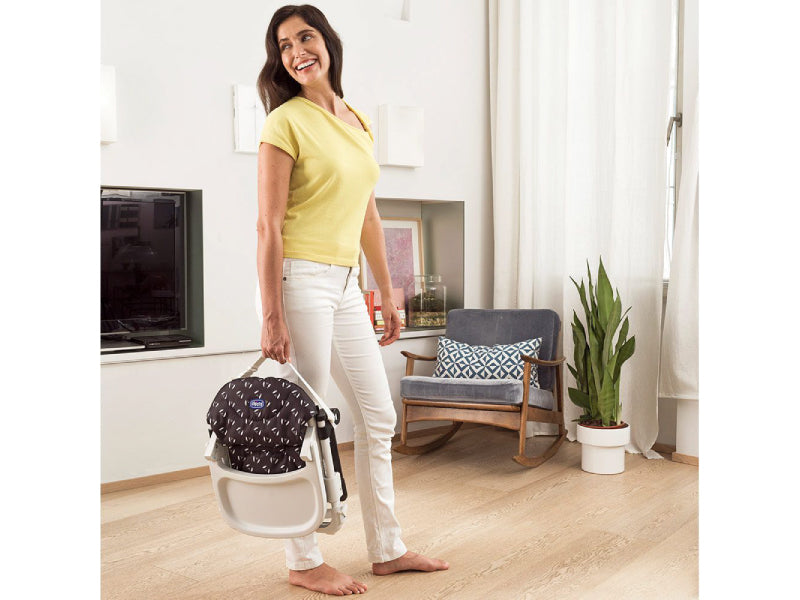 Chairy is the only one that can be used as a standard booster seat (6-36 m) and as a first chair (12-36 m). It evolves following your baby’s growth thanks to the adjustable height and the removable tray and belts. It’s also super compact and convenient to use!