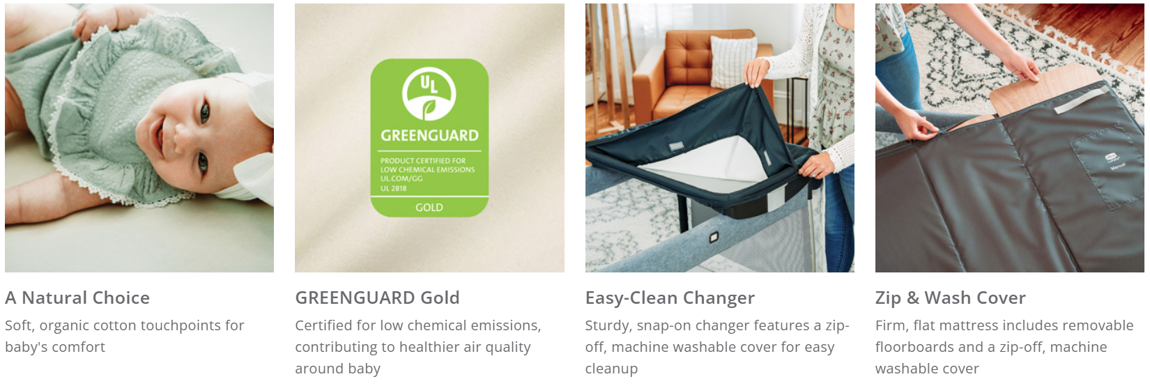- GREENGUARD Gold Certified for low chemical emissions, contributing to healthier air quality around baby